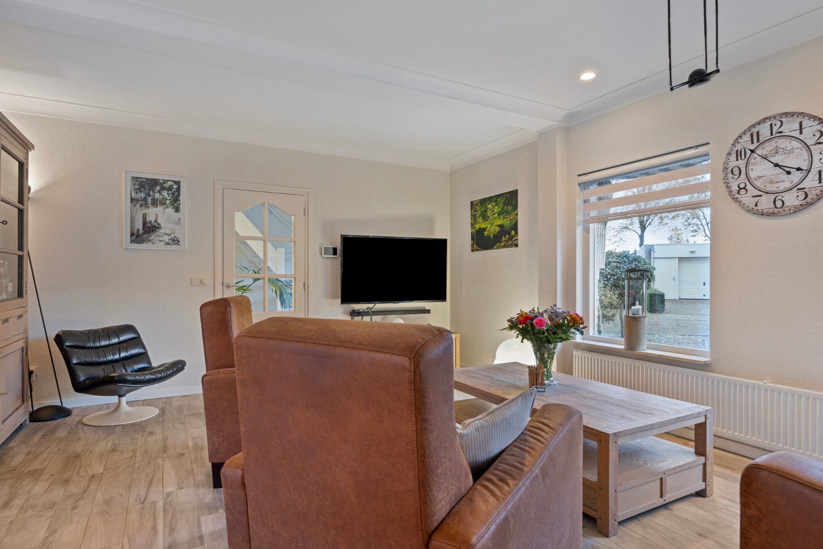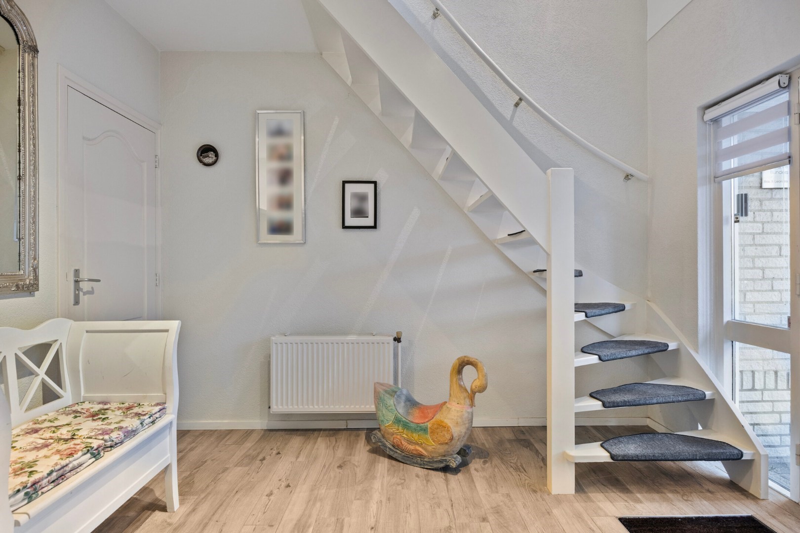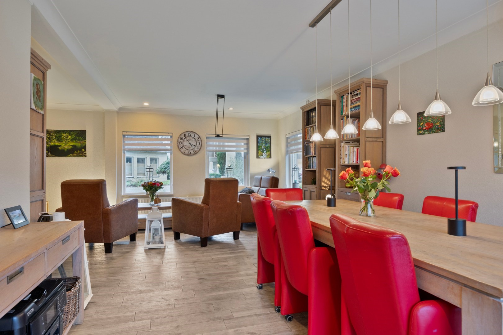Indeling: zeer ruime hal ca 11m² met luxe toilet(’19), garderobe en vernieuwde meterkast(8 groepen), deur naar woonkamer. Ruime L-vormige lichte woonkamer ca 40m² verdeeld in royale zitgedeelte voorzijde en eetgedeelte/kamer met airco aan de achterzijde met schuifpui en fraai zicht op zonnige achtertuin en zijtuin.