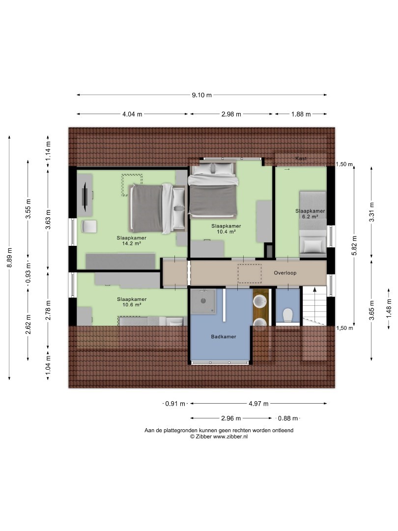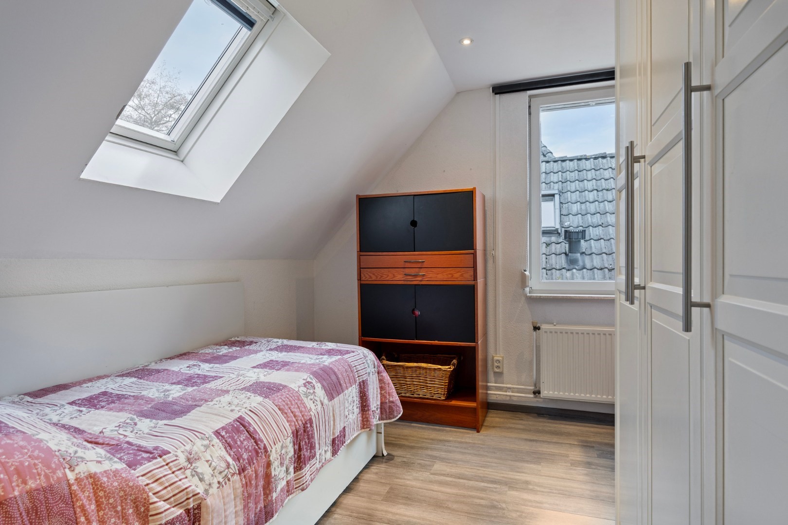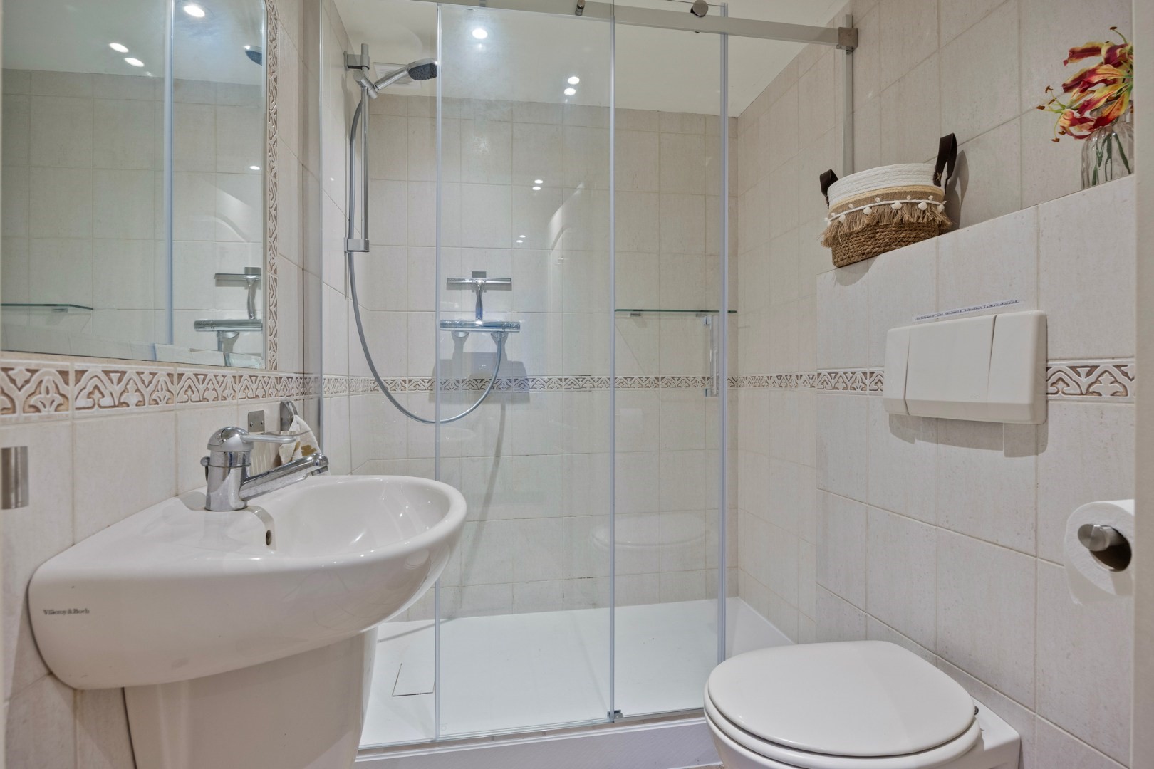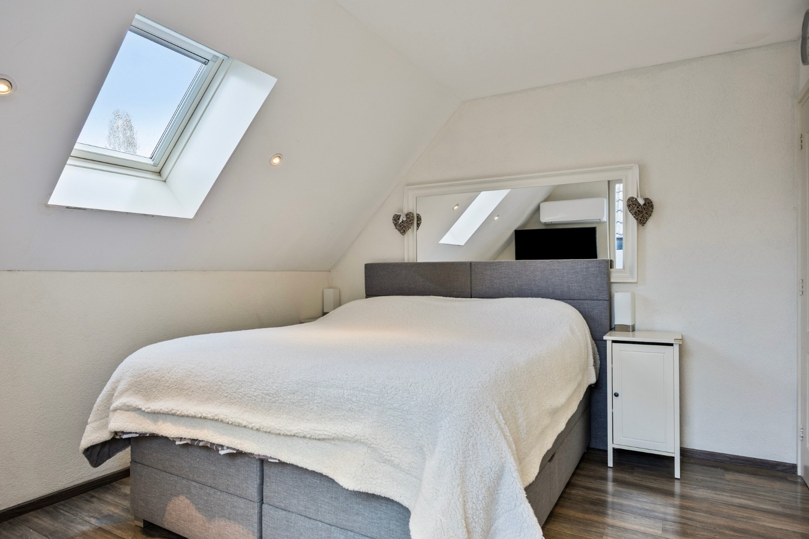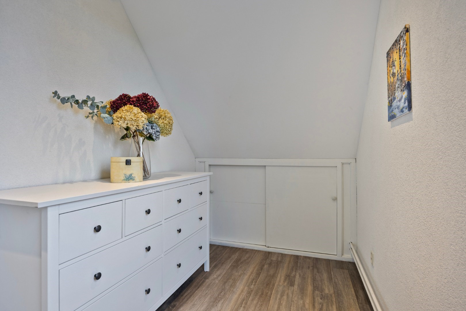1e verdieping(v.v. laminaatvloer: overloop met luxe 3e toilet(‘19), 4 ruime slaapkamers ca 14m² met airco, 10m², 10m² met dakkapel en 6m2 met ingebouwde bergruimte, luxe complete en ruime 2e badkamer(’19) met dakkapel en rolluik, luxe breed badmeubel met 2 waskommen en ruime inloopdouche.