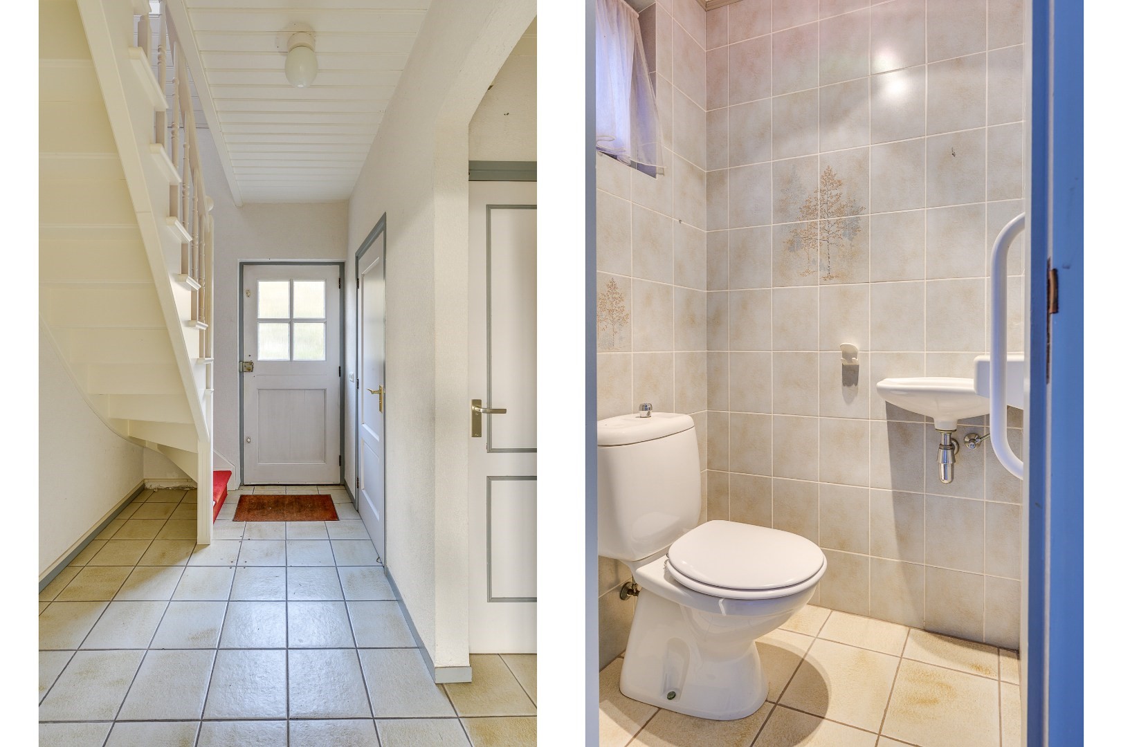 Indeling: entree, ruime hal met garderobe, meterkast (12 groepen en 2 aardlekschakelaars) en betegeld toilet.