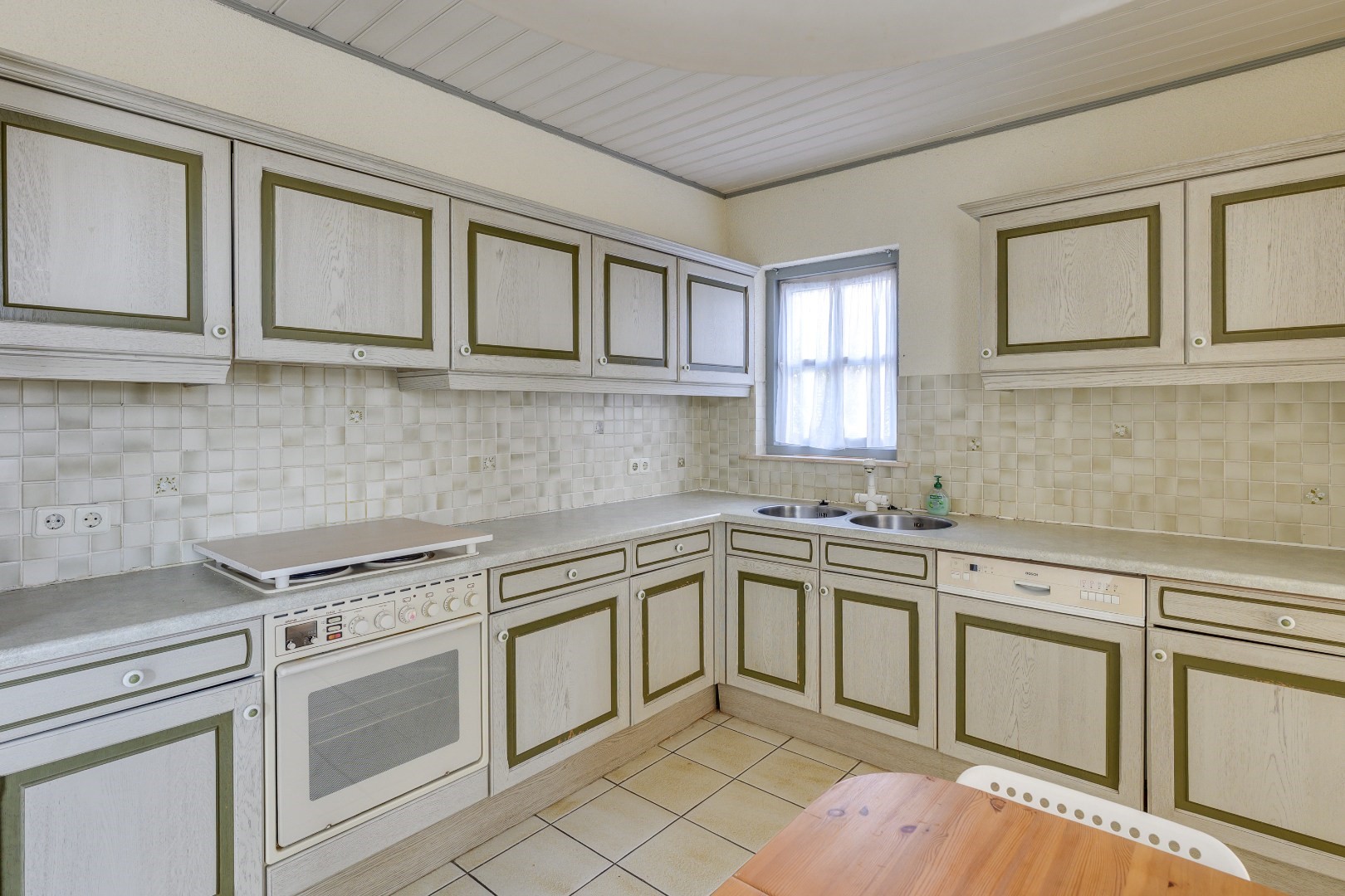 Sfeervolle eetkeuken ca 9m² met originele keukeninrichting v.v. kookplaat, afzuigkap, oven, koelkast, vaatwasser en ruimte voor eettafel.