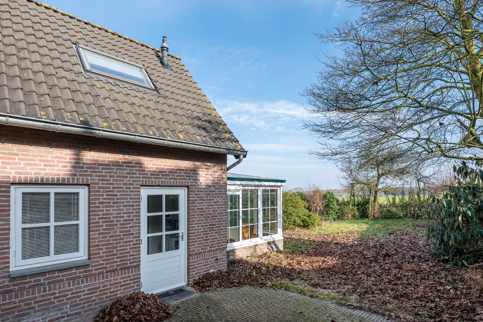 Op zeer rustige locatie aan de rand van het dorp gelegen, grotendeels in originele staat verkerend VRIJSTAAND LANDHUIS met royale living, aparte tuinkamer/serre, 4 ruime slaapkamers, ruime zolder, inpandige GARAGE, bijkeuken, ca 23m diepe zonnige achtertuin met overdekt terras en uniek vrij uitzicht over landerijen en beschermd natuurgebied.