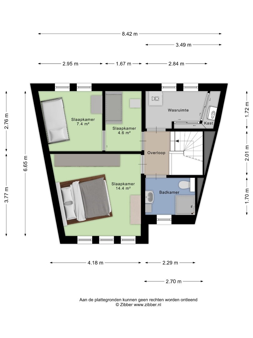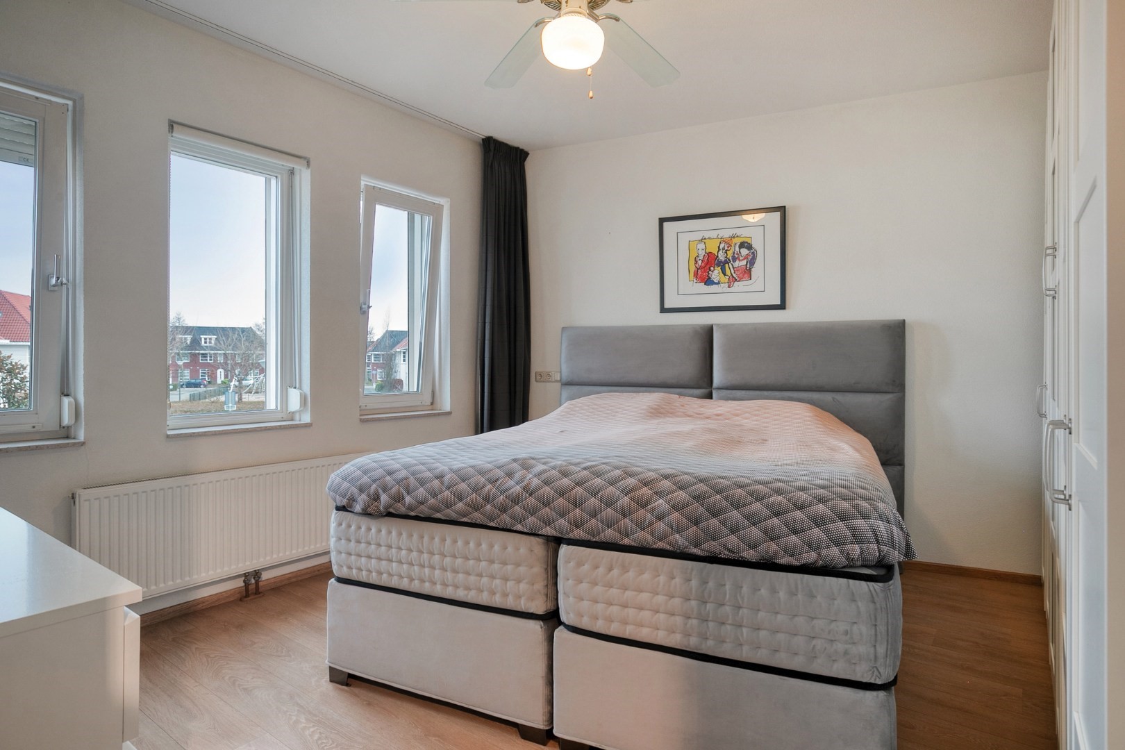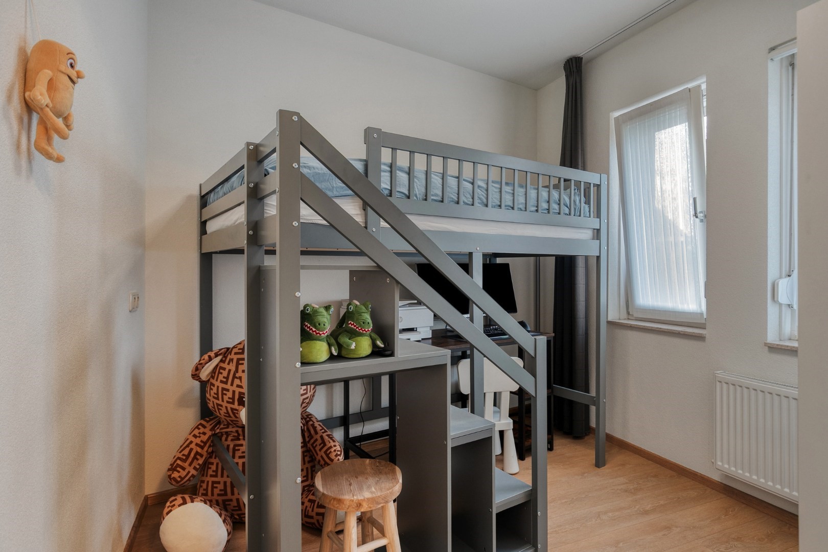1e verdieping(v.v. laminaatvloer): overloop met airconditioning(koelen en verwarmen ook voor de begane grond), 3 (slaap)kamers: ca 14m² en 7m² met bijzonder fraai uitzicht over weilandje met dieren, berg/werk/studeerkamer 5m², wasberg/cvruimte: 6m² met Nefit HR-combiketel, WTW installatie en aansl. wa.