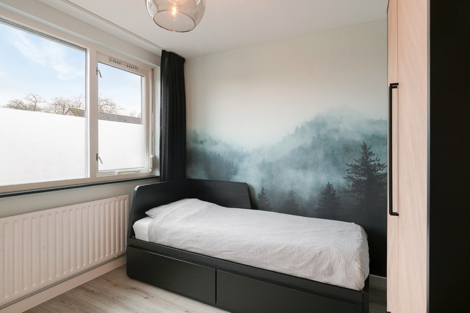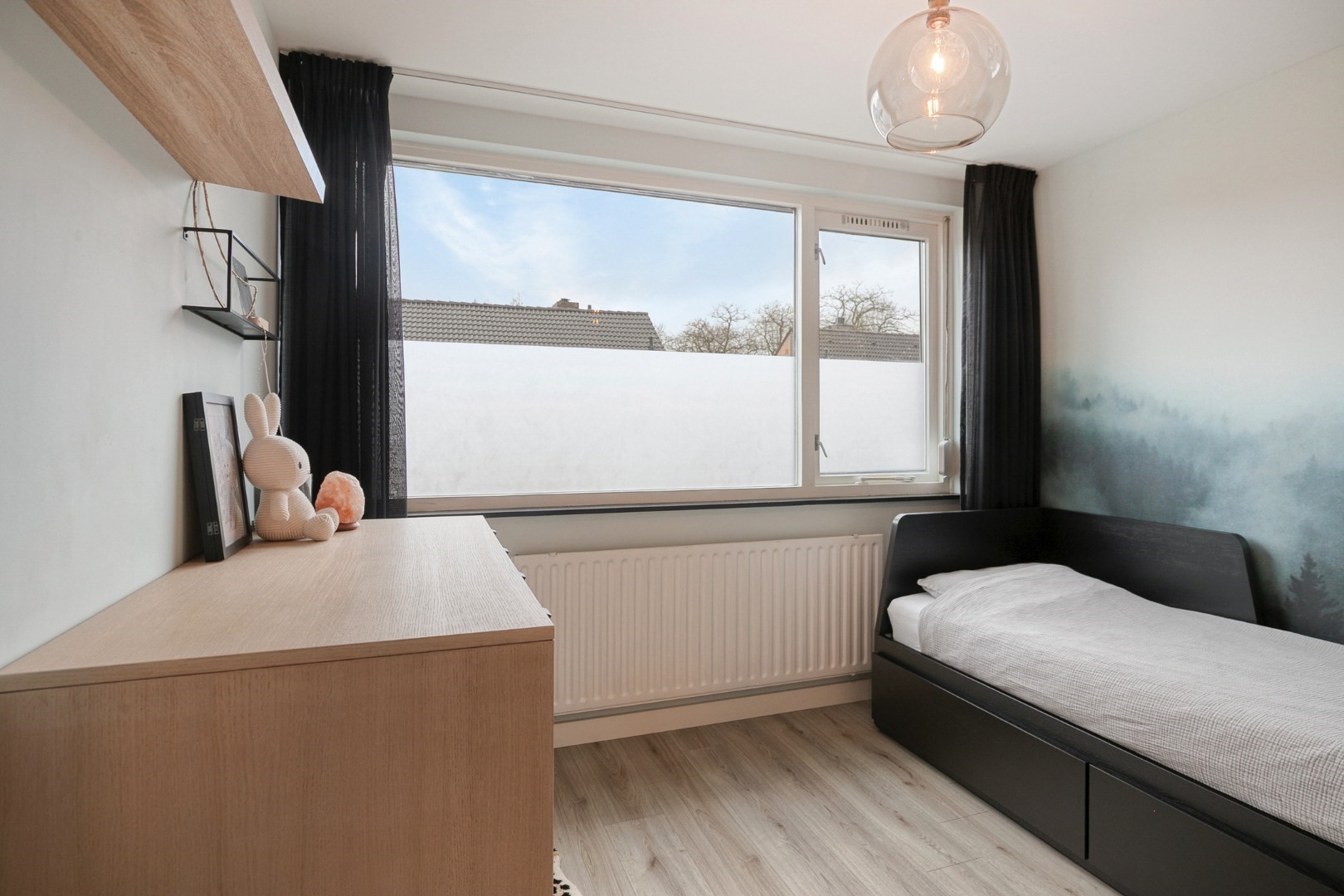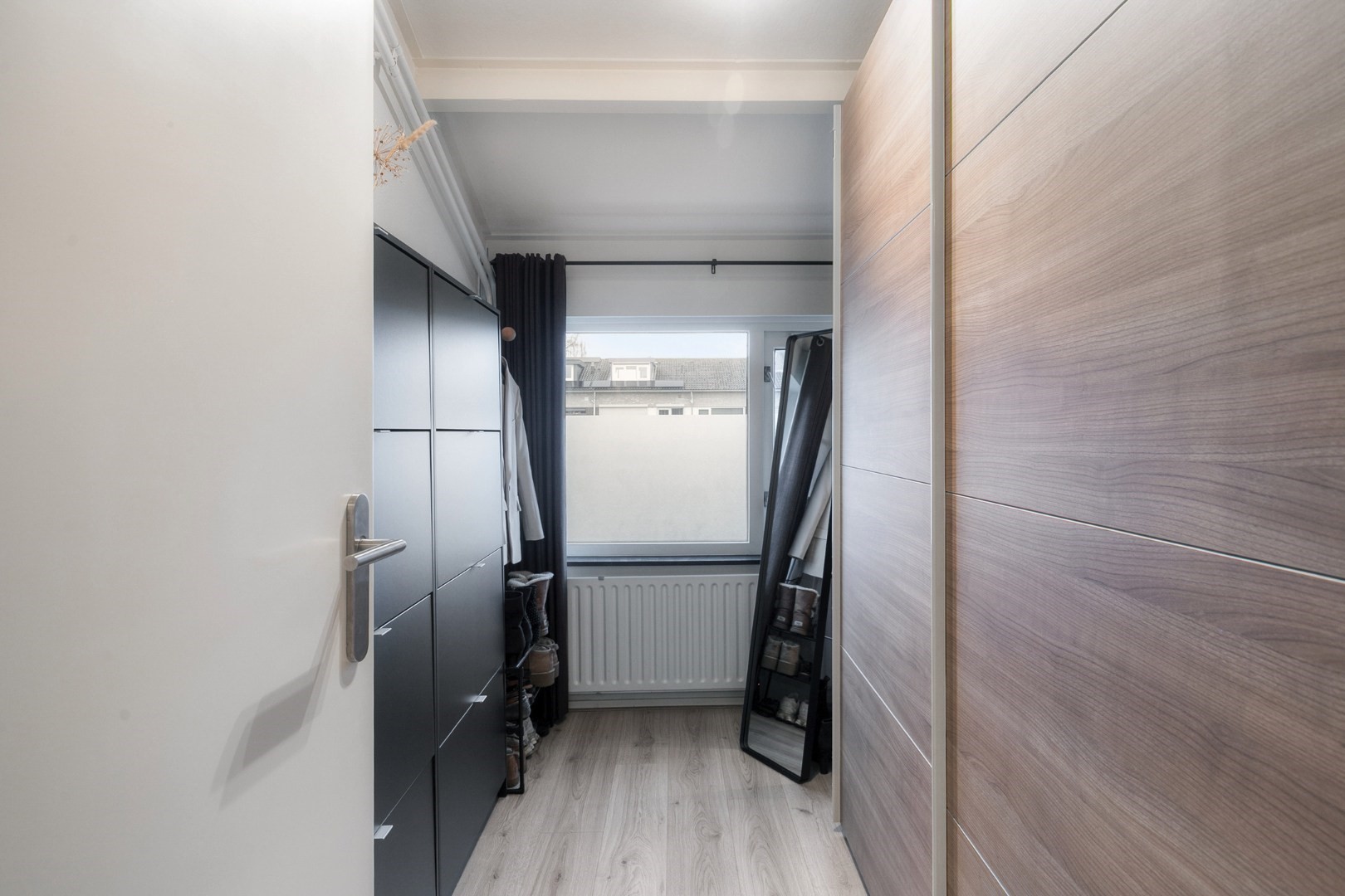 Fixed staircase to 2nd floor (with laminate flooring): landing with storage space, Remeha high-efficiency combi boiler ('15), wasmachine/dryer connection, surprisingly spacious 5th bedroom approx. 13m² with large windows and built-in storage space.