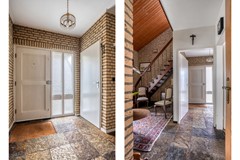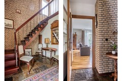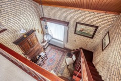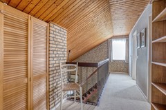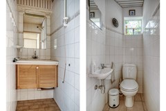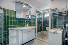 1e verdieping: ruime overloop met vide, 3(mog.4) slaapkamers resp. ca 13m² met balkon en ingebouwde kast, ca 9m² met ingebouwde kast, ca 7m² met vlizotrap naar ruime bergzolder en 4e kasten/slaap/logeerkamer ca 10m² met ingebouwde bergruimte, ruime originele badkamer met inloopdouche, 2e toilet en breed badmeubel en wastafel. Aparte berg/droogruimte met cv-combiketel.