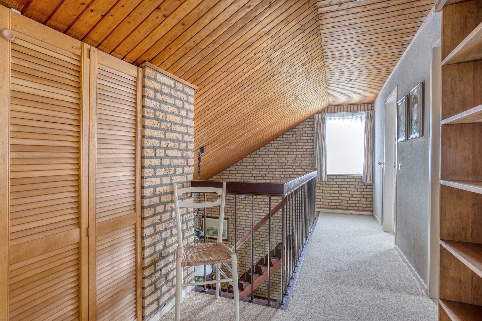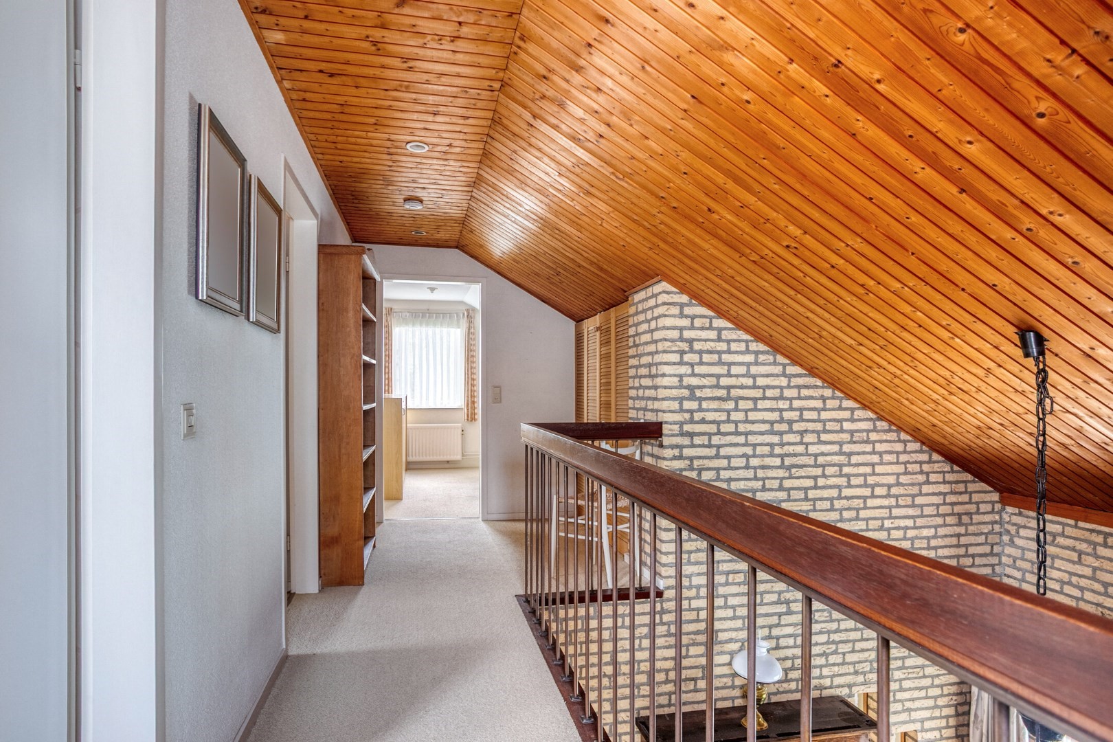 1st floor: spacious landing with vide, 3 (possibly 4) bedrooms of approx. 13m² with balcony and built-in closet, approx. 9m² with built-in closet, approx. 7m² with loft ladder to spacious storage attic and 4th closets/bedroom/guest room of approx. 10m² with built-in storage space, spacious original bathroom with walk-in shower, 2nd toilet and wide bathroom furniture and sink. Separate storage/drying room with central heating boiler.