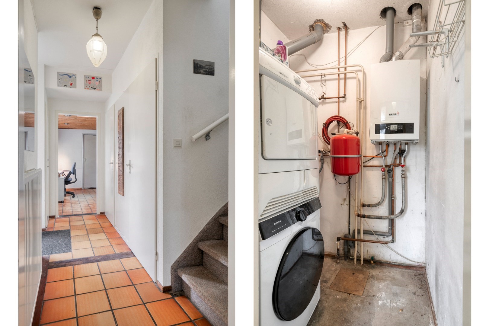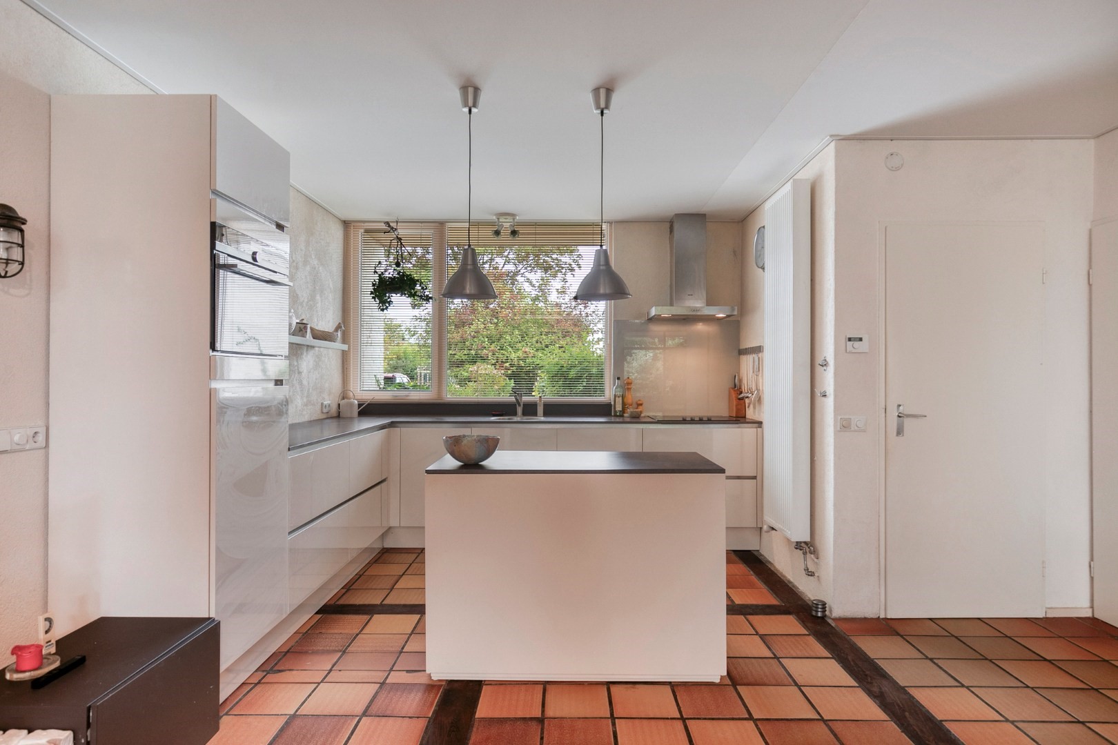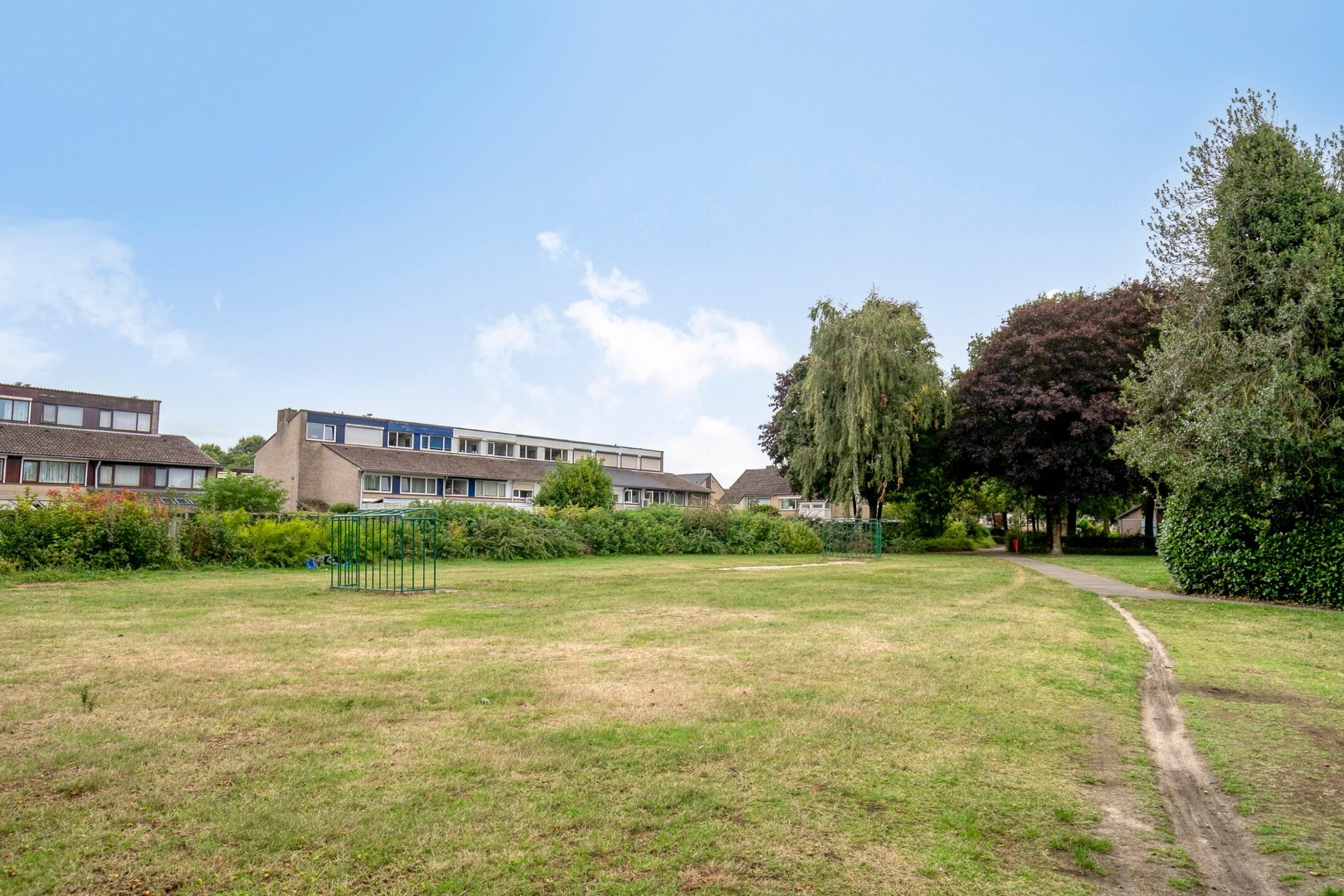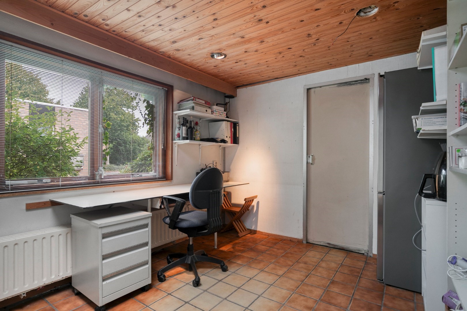 Located in a quiet residential area, this spaciously extended semi-detached house features a living room of approximately 60m², an office and storage room (formerly a garage), and a sunny west-facing back garden of approximately 13m with a generous covered terrace. It borders a large park and is close to a primary school/daycare center, within walking distance of woods, a shopping center, and all amenities.