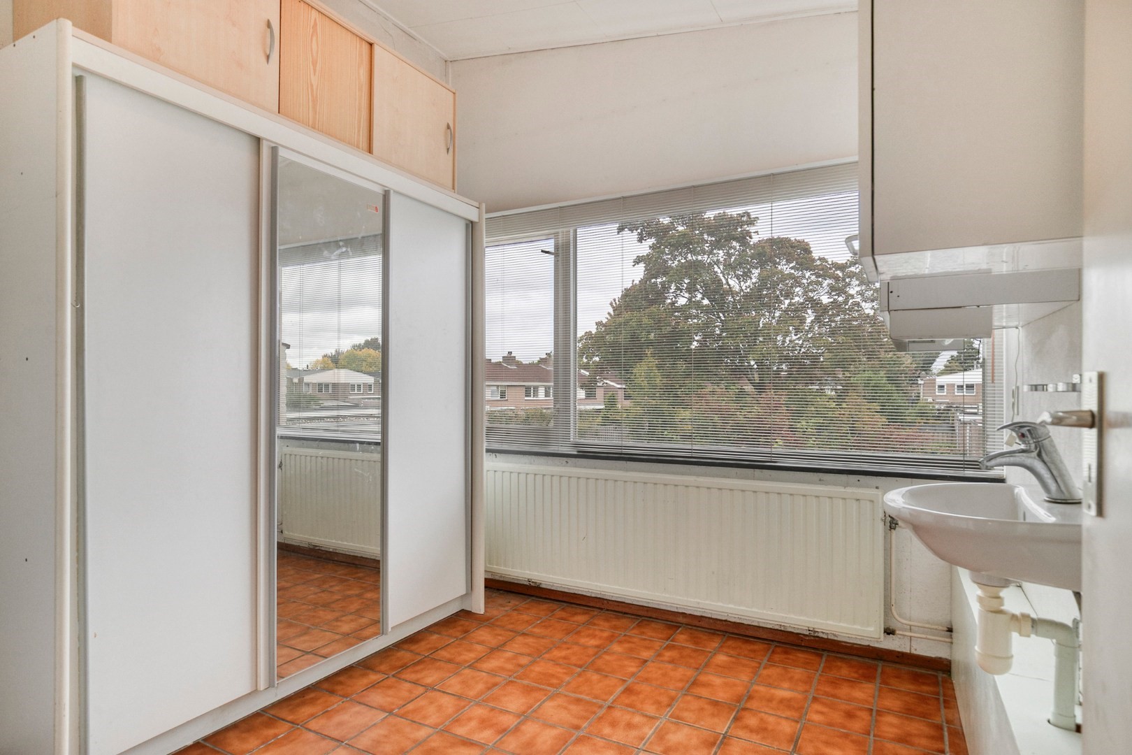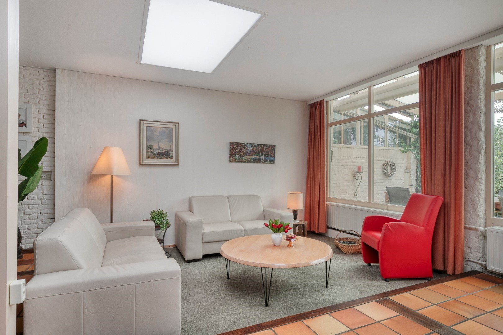 Indeling: hal met luxe toilet ('15) en cv/bergkast met Nefit HR combiketel('14) en aansl. wa., riant uitgebouwde woonkamer met bergkast, 2 lichtkoepels, zitgedeelte met tuindeur naar royaal overdekt terras.