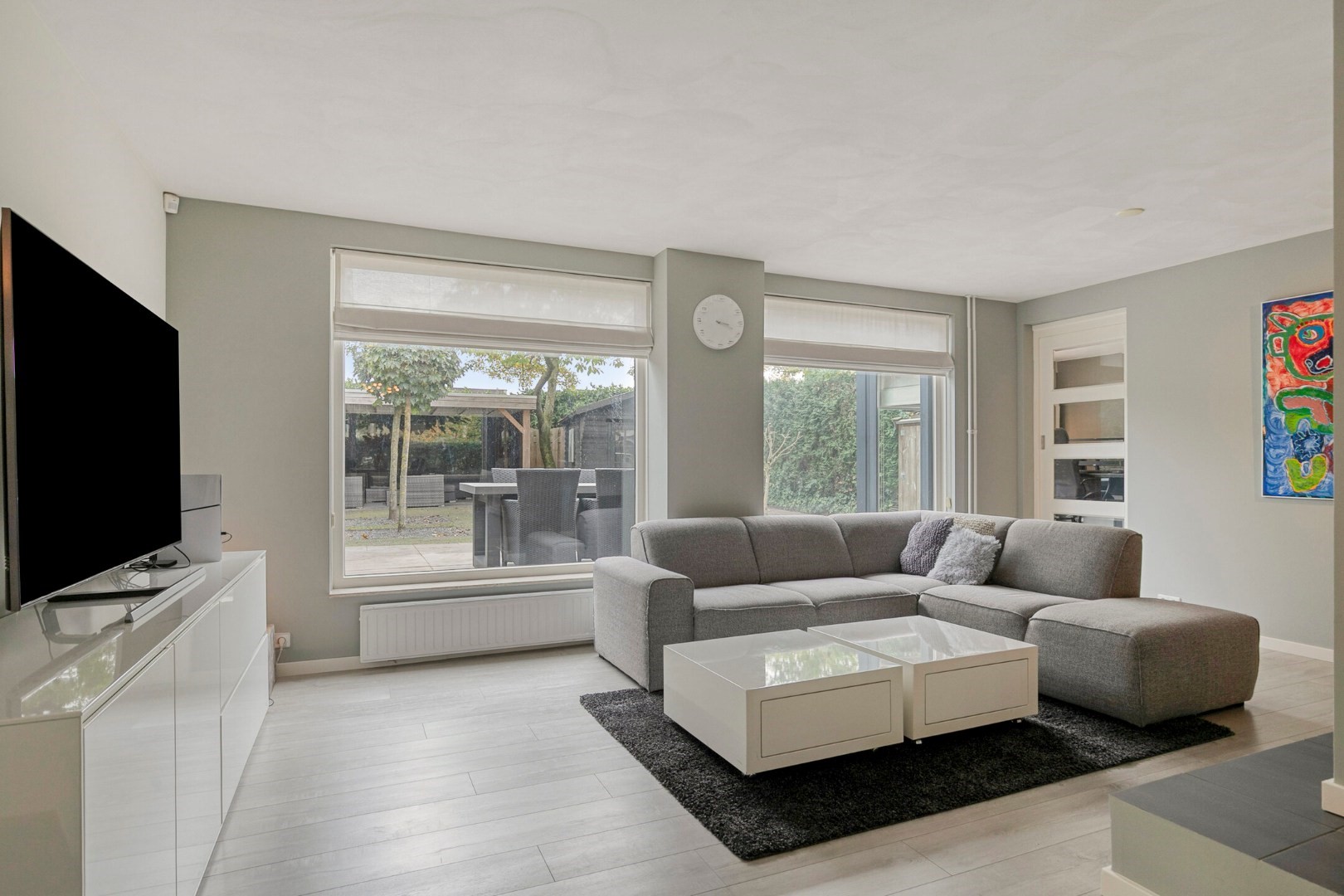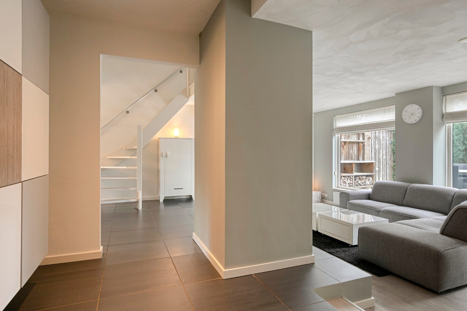 Totale living (maar liefst ca 70m²) gedeeltelijk voorzien van tegelvloer en laminaatvloer(zitgedeelte).