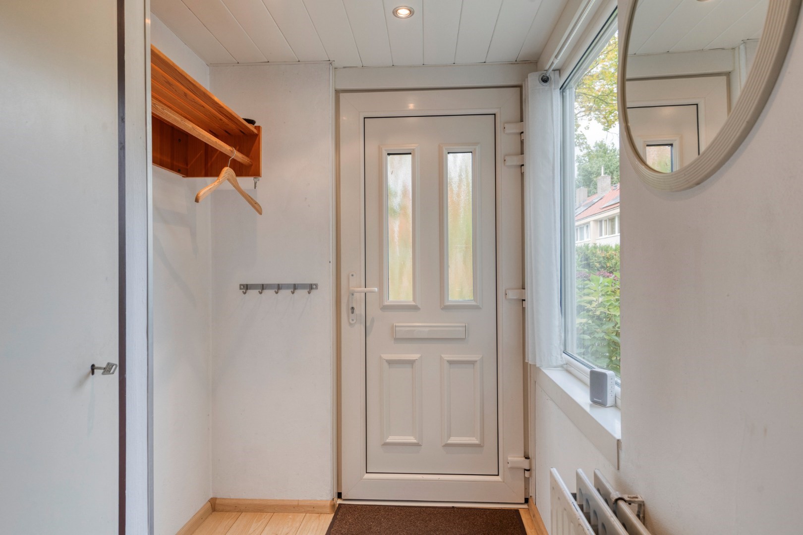 Vanuit bijkeuken/portaal deur naar naar royaal overdekt terras ca 10m2 en zonnige ca 16m diepe fraai aangelegde achtertuin met ruime berging, lichte carport en brede achterom.