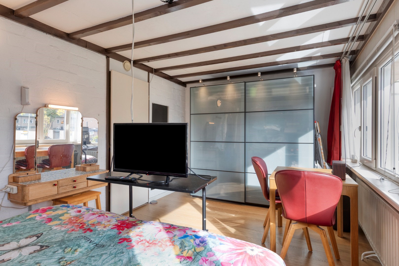 In 3e slaapkamer vaste vlizotrap naar verrassend ruime 2e verdieping: open slaap/werk/speelzolderruimte ca 16m2 met dakraam. (In november zal 2e dakraam geplaatst worden).